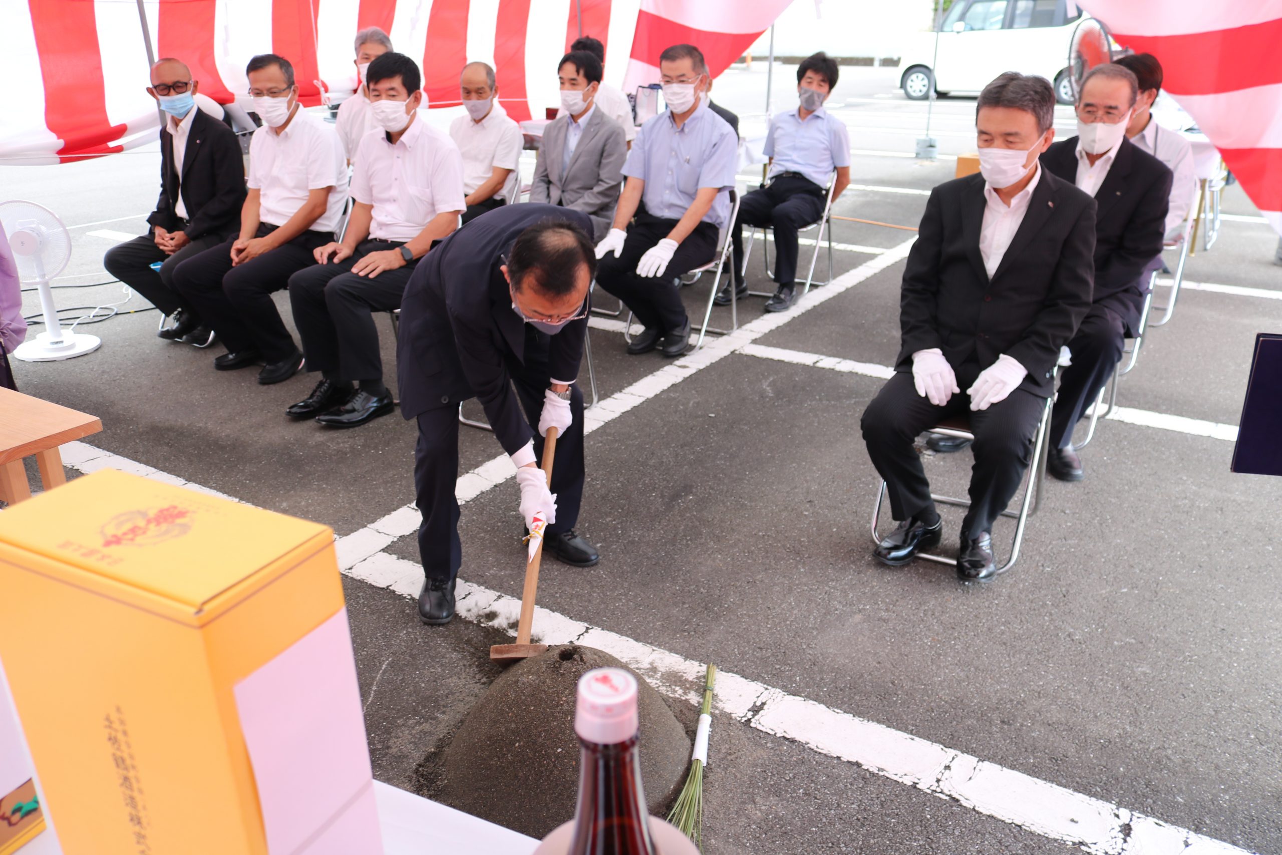 来年、当社は創立60周年を迎えます。当施設の建設はその記念事業の一つとして計画されたものであり、コロナ禍が収束し、創立記念式典と当施設の落成式を盛大に挙行できることも合わせて、祈願いたしました。