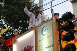 「トラックよさこい」の地方車が、「よいさ、ほいさ」と車体を左右に大きく揺らしながら演舞場に入ってくると、演舞場が興奮の渦に包まれました。今年か初回出場であったため審査対象外でしたが、ダントツのうまさでした。来年は大賞に選ばれると思います。