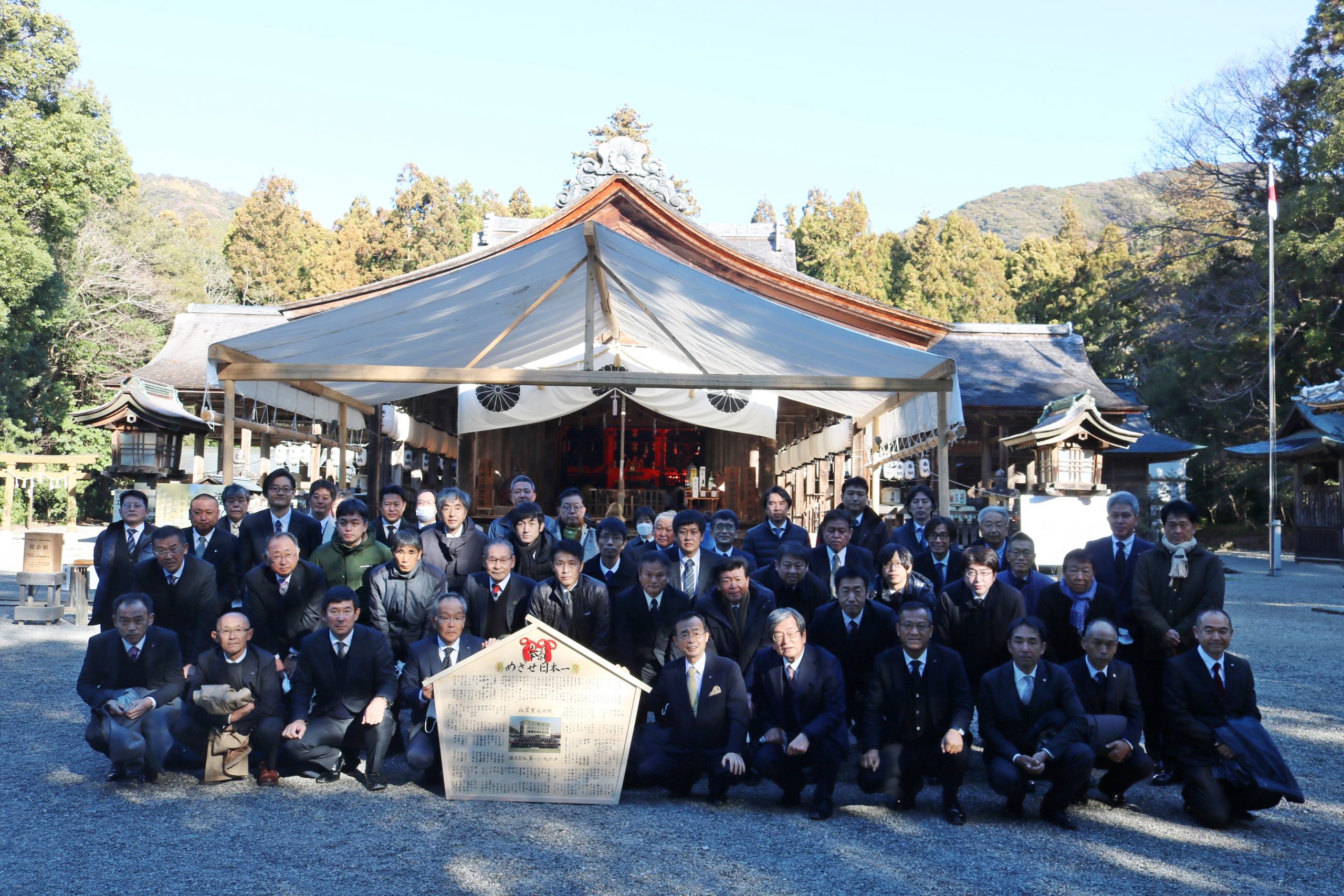 社長の右城による年頭の挨拶の後、毎年恒例となった巨大絵馬に社員の抱負を込めて中堅社員~幹部社員で土佐神社に参拝し、社内安全・社業繁栄の祈願と絵馬を奉納致しました。