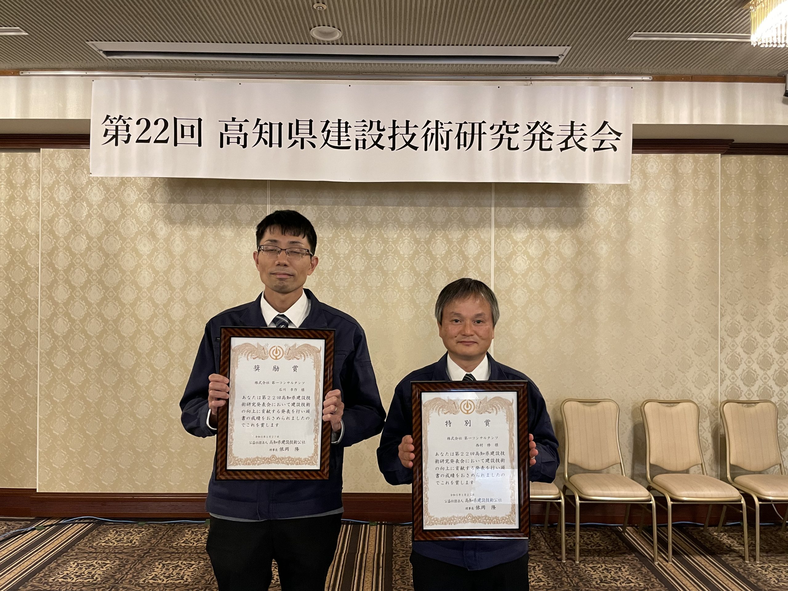 「第22回 高知県建設技術研究発表会」で受賞(2023/01/23)