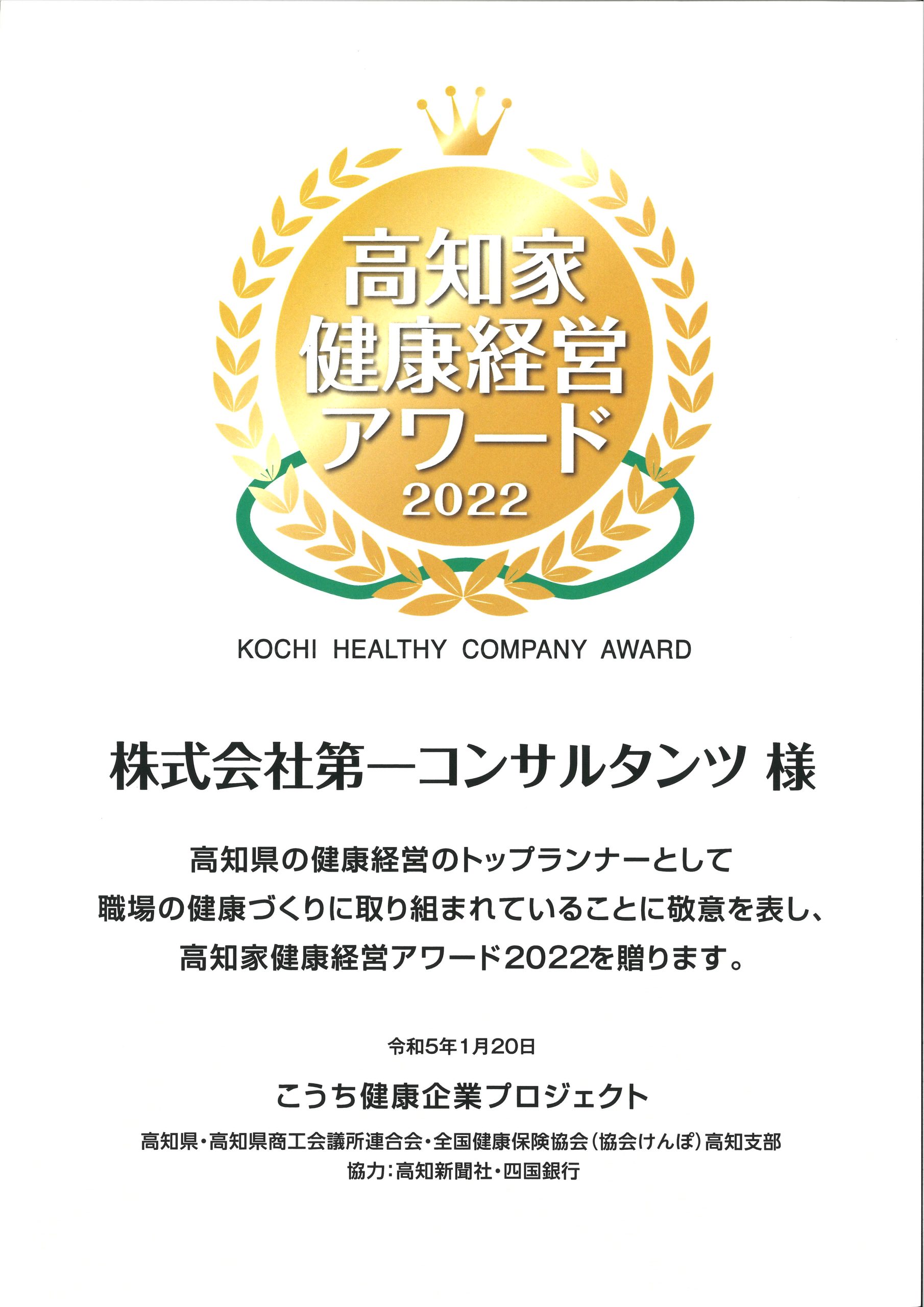 「高知家健康経営アワード2022」を受賞(2023/02/20)
