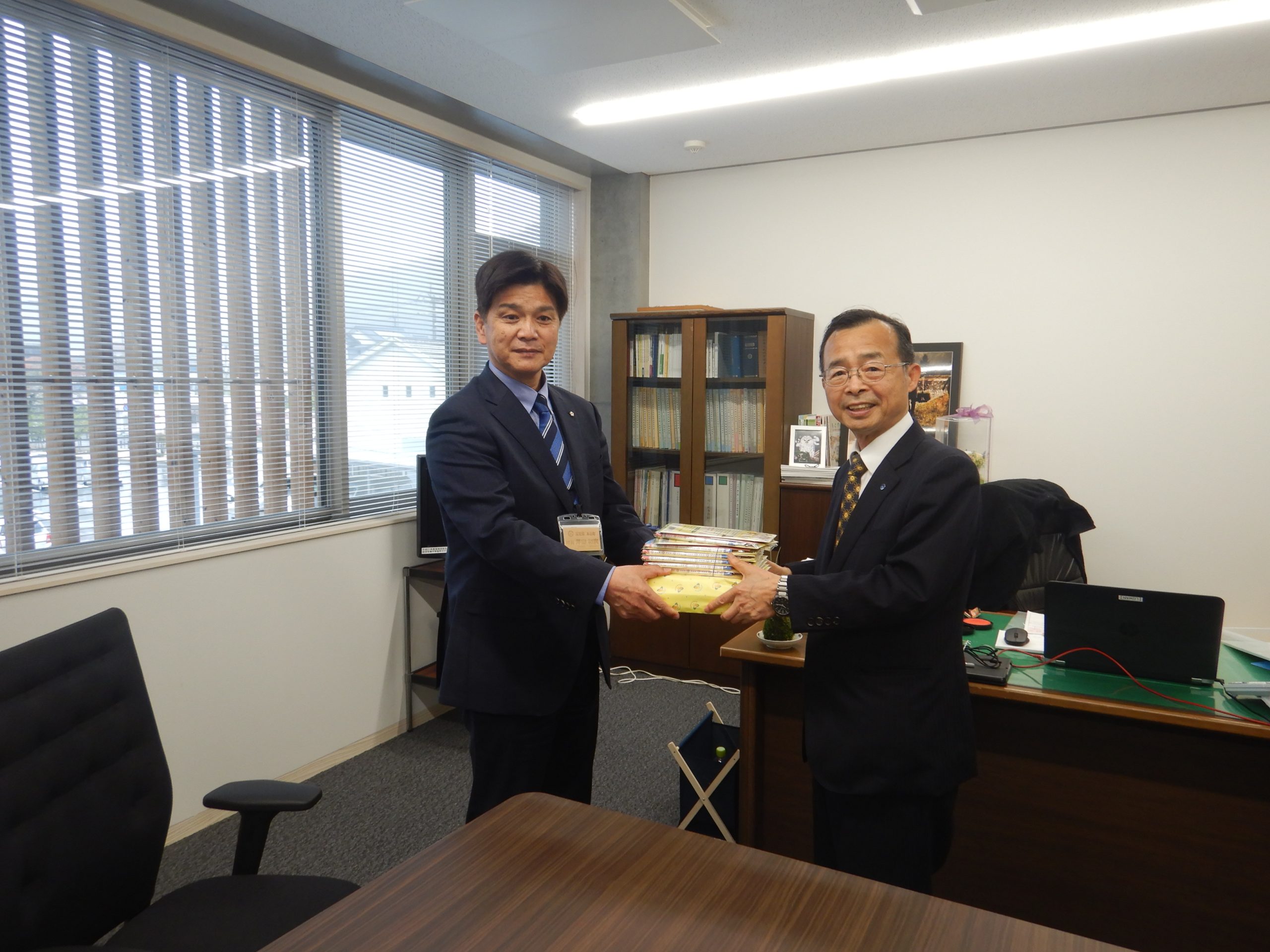 大豊町、本山町、土佐町を訪問し、大豊学園、本山小学校、吉野小学校、土佐町小学校の新一年生に「さんかく鉛筆」を贈呈させていただきました。