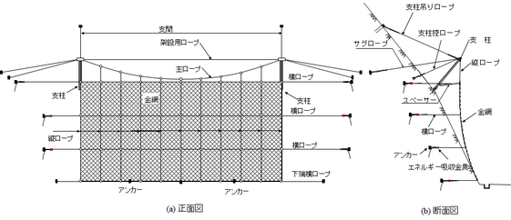 | 目 的 | エネルギー吸収性能と捕捉性能に優れたポケット式落石防護ネットの開発。 |