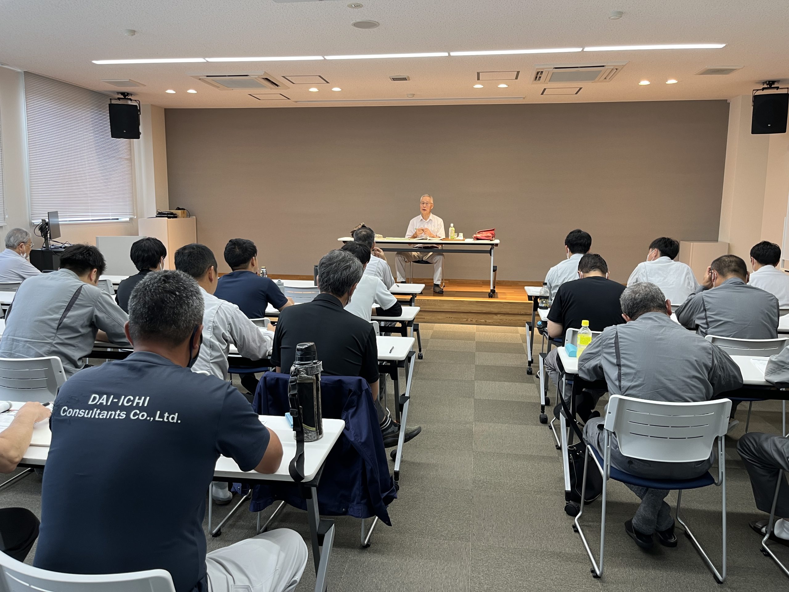 実施にあたっては、当社と労働安全コンサルタントの顧問契約を結んでいる片岡様により以下の内容で24名が受講しました。
