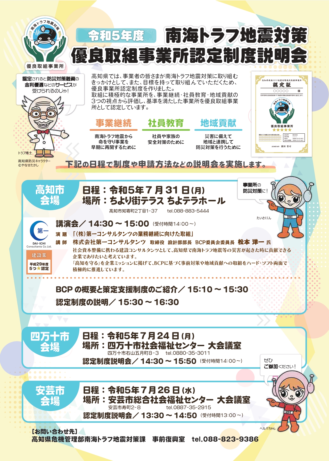 令和5年度 高知県南海トラフ地震対策優良取組事業所認定制度説明会(2023/07/31)