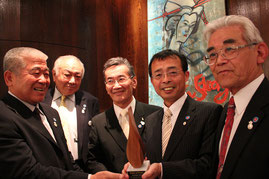 平和の炎賞を手にする坂本龍馬財団のメンバー