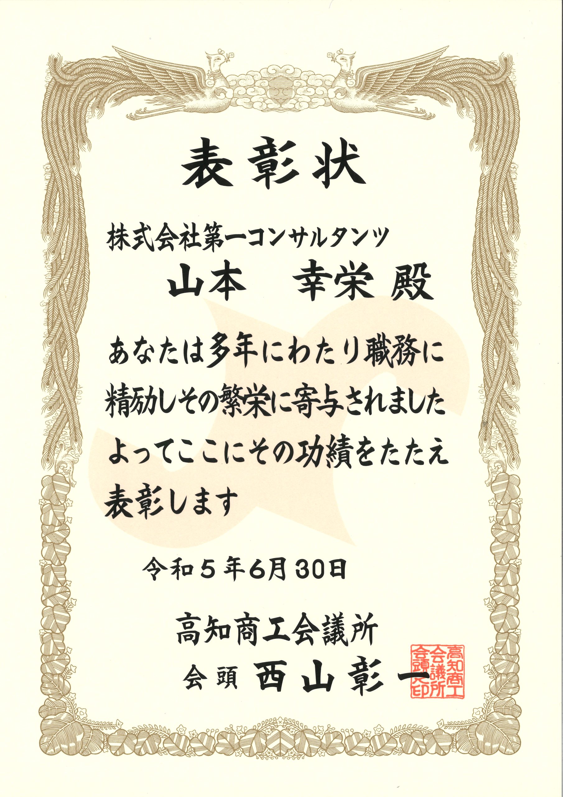当社も当表彰式に参加しており、今年度は①の理由により、総務課山本幸栄さんを推薦致しました。表彰式は高知商工会議所で行われました。