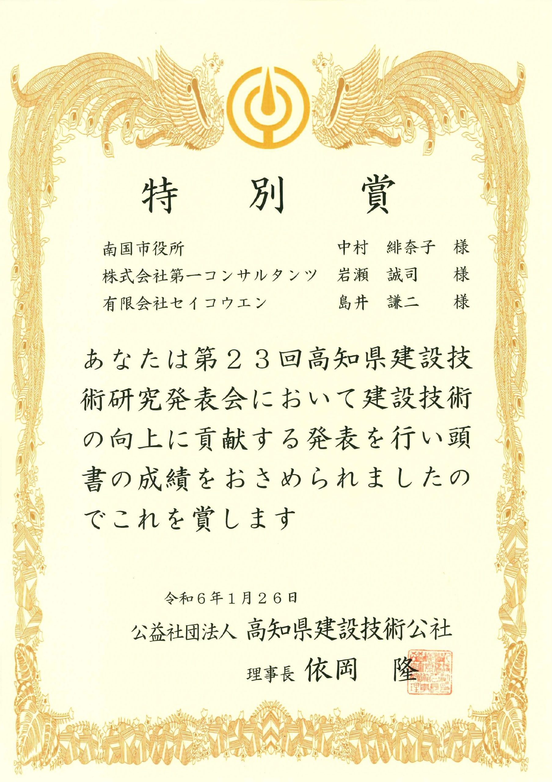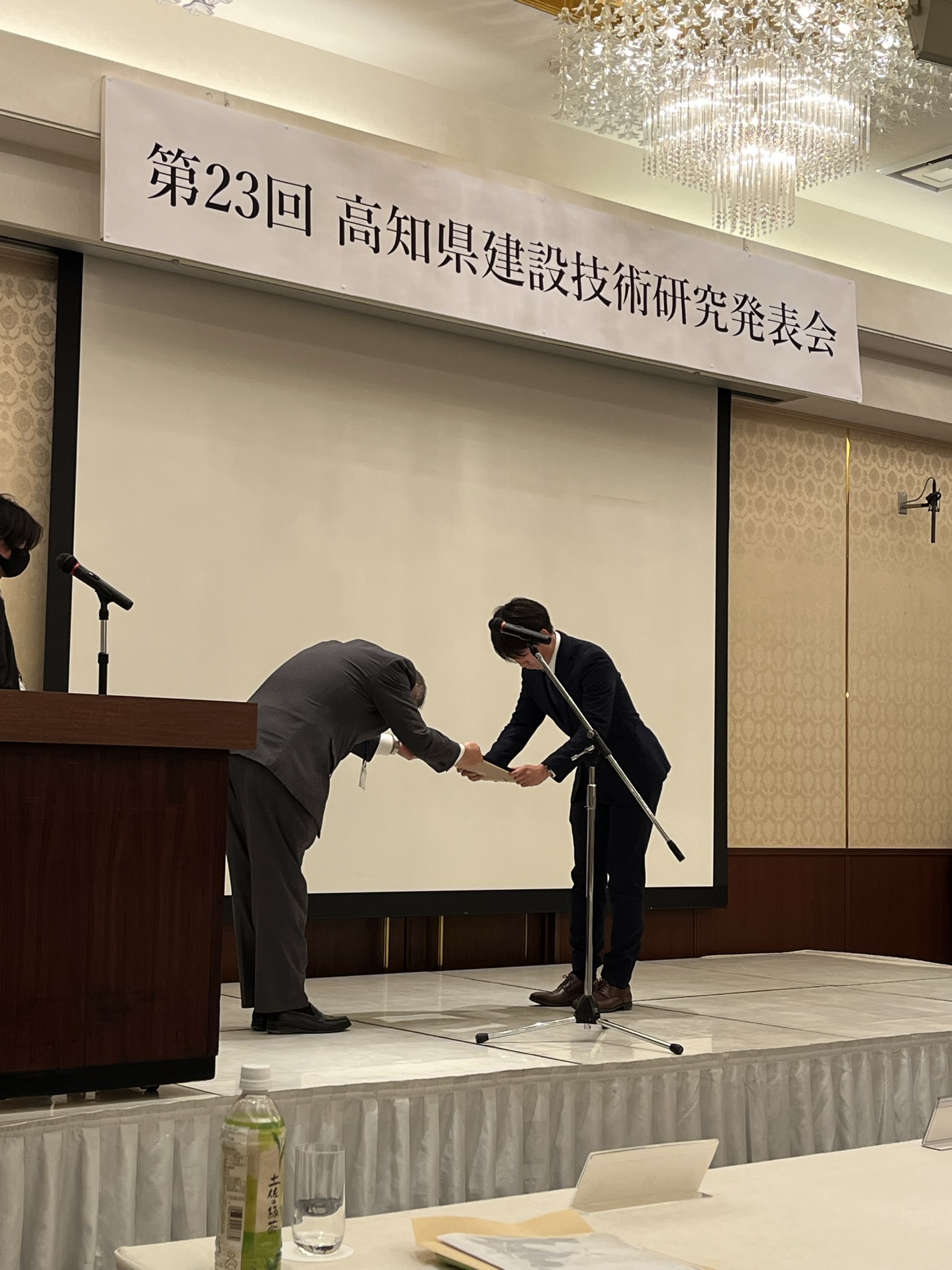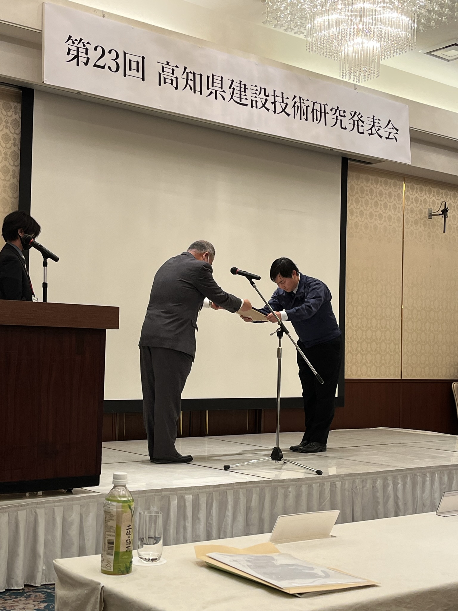 「第23回 高知県建設技術研究発表会」で奨励賞を受賞(2024/01/26)