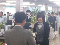 1月30日に開催された第14回高知県建設技術研究発表会(高知県建設技術公社主催)で最優秀賞を受賞した設計3課山内を社内表彰しました。表彰状・金一封が社長より手渡され、今後も期待すると言葉が掛けられました。
