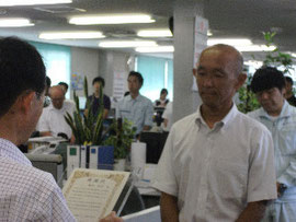 平成24年度国土交通行政関係功労者表において、高知河川国道事務所及び土佐国道事務所より優秀貢献業務表彰の受賞業務に携わった担当者の社内表彰を行いました。