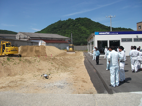 午後の部はコマツIoTセンター四国で「i-Construction対応セミナー」として、スマートコンストラクション、ドローン(UAV)デモ飛行、ICT建機の試乗体験をしました。