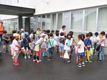 当日は、避難場所となる1階の研修室、食堂、トイレ、3階の仕事場、屋外の非常用自家発電装置などを見学していただきました。子供たちは、普段の通学時に見ていた建物内部の様子に興味津々でした。