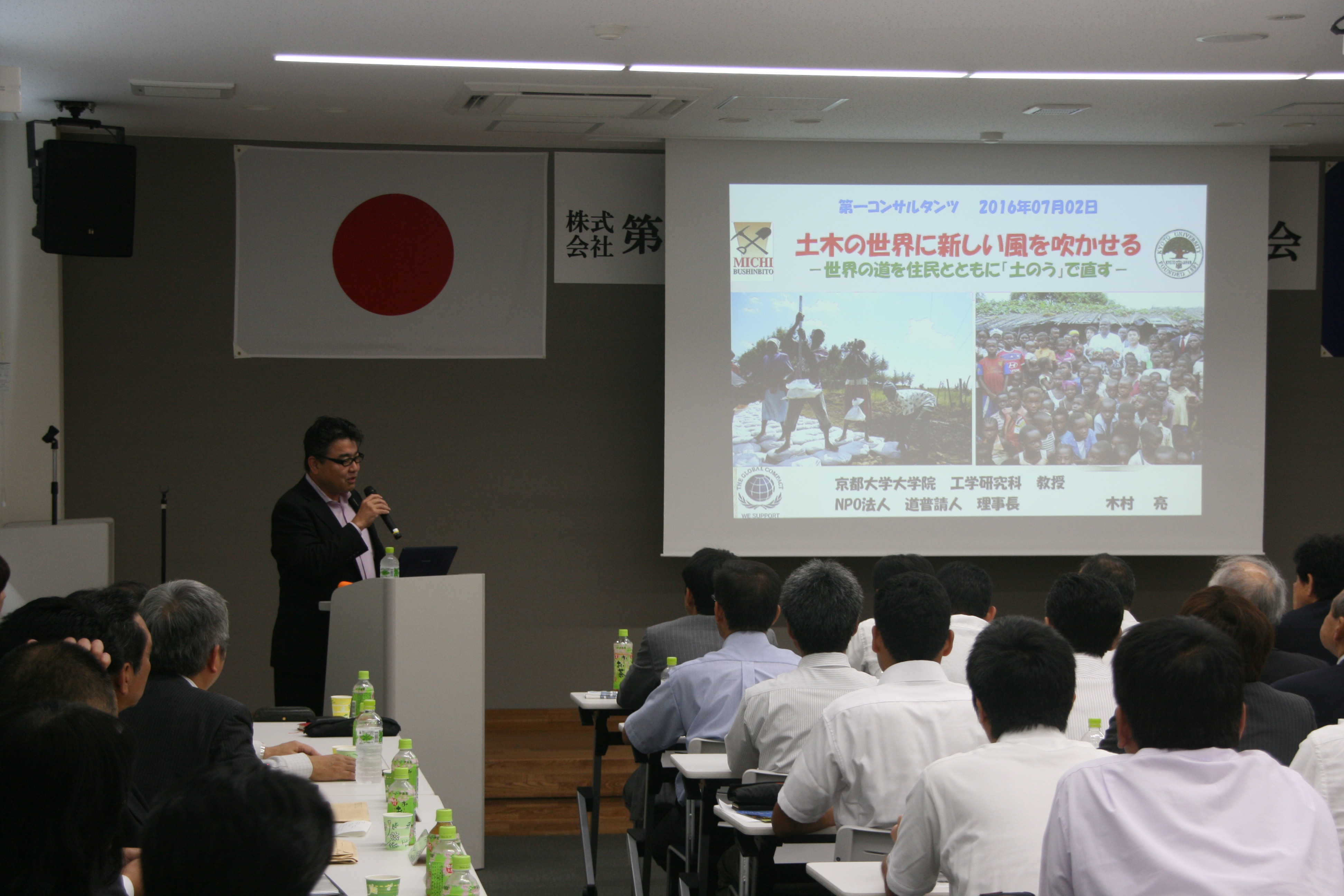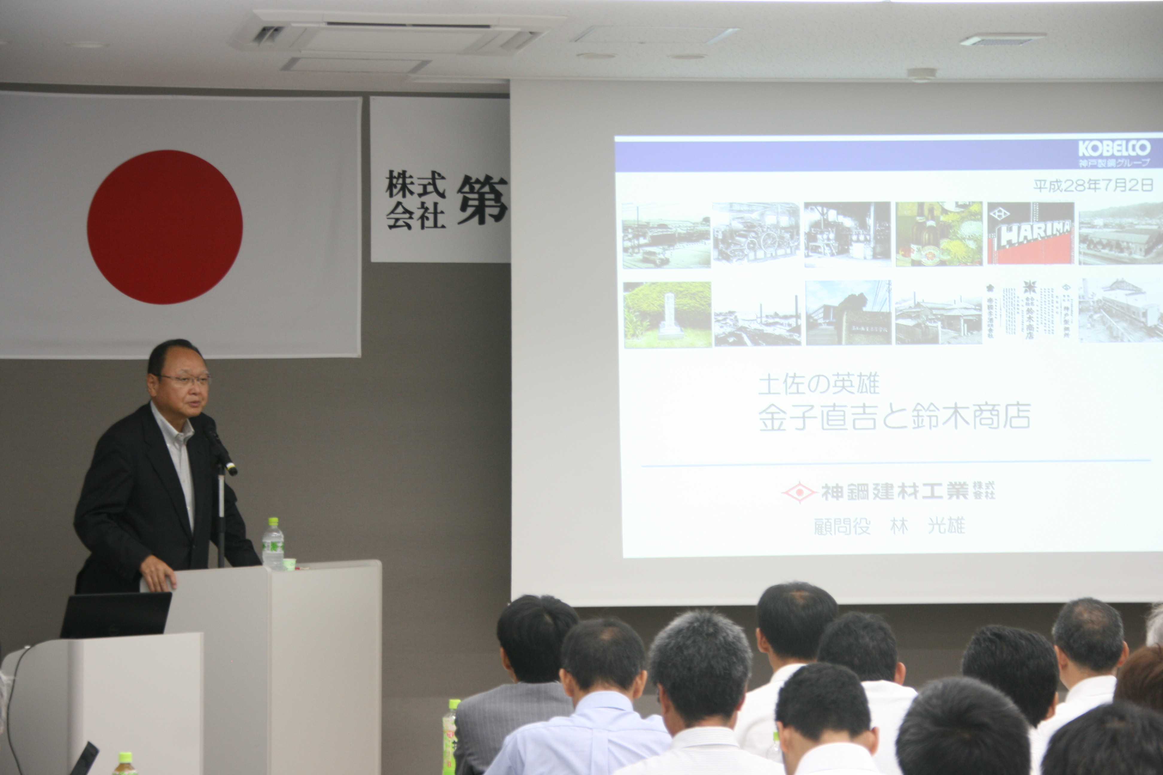 さる7月2日に、平成28年度経営方針発表会の特別講演として第8回第一セミナーを開催しました。今回は、神鋼建材工業株式会社顧問役の林光雄講師に「土佐の英雄『金子直吉と鈴木商店』」、京都大学大学院工学研究科教授の木村亮講師に「土木の世界に新しい風を吹かせる」と題した講演をしていただきました。