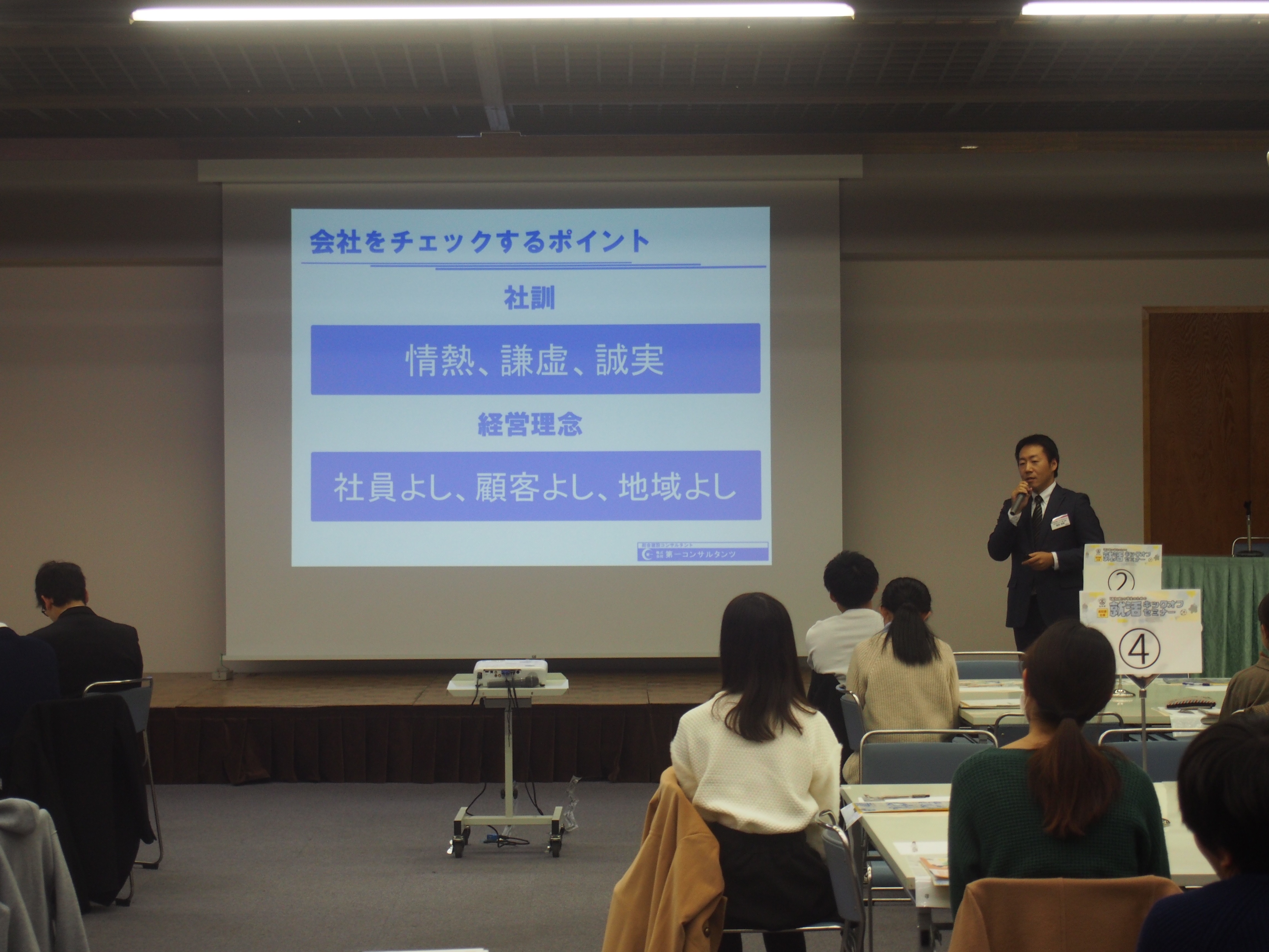 本日、高知市の高知城ホールにおいて、「就活キックオフセミナー」が開催され、弊社から防災まちづくり課の堀田が参加いたしました。セミナーでは、最初に参加企業の発表があり、弊社の仕事内容とやりがい、高知での暮らしを説明させていただきました。その後、学生さんがグループに分かれて参加企業の担当者と直に交流する時間があり、高知で働く魅力についてディスカッションをいたしました。