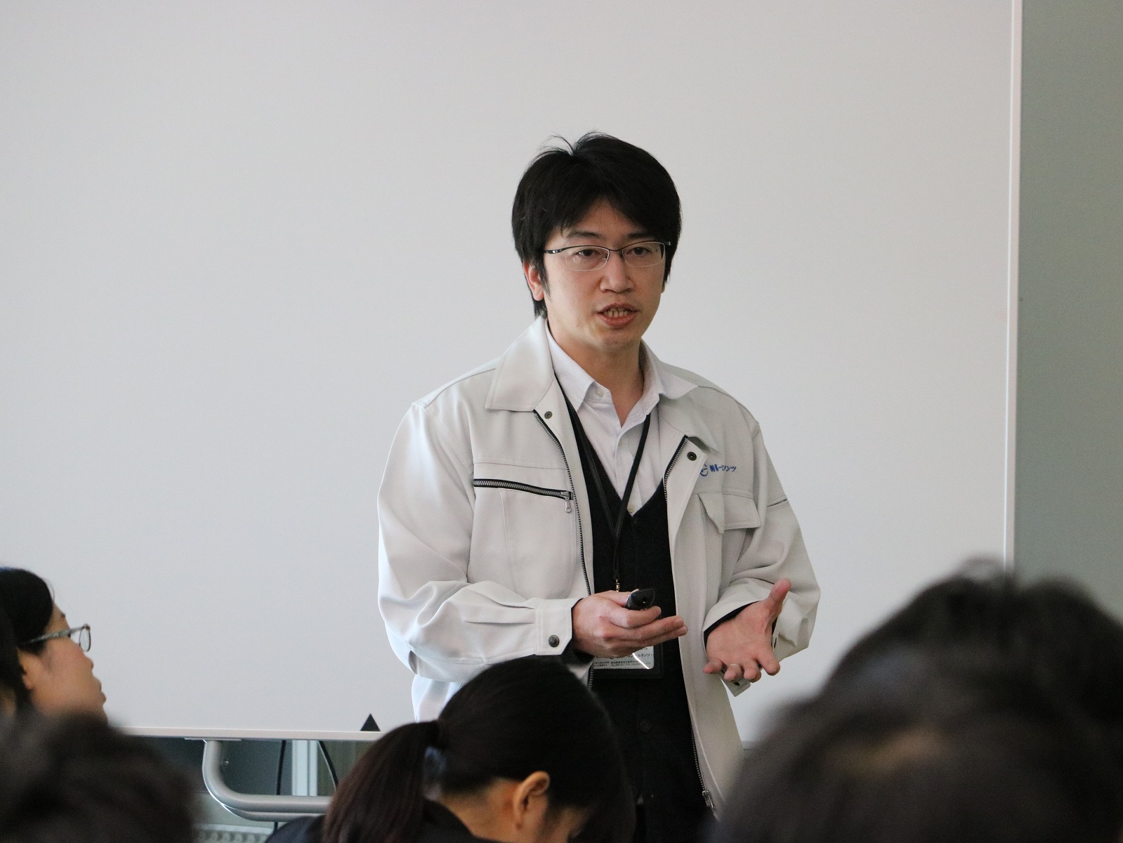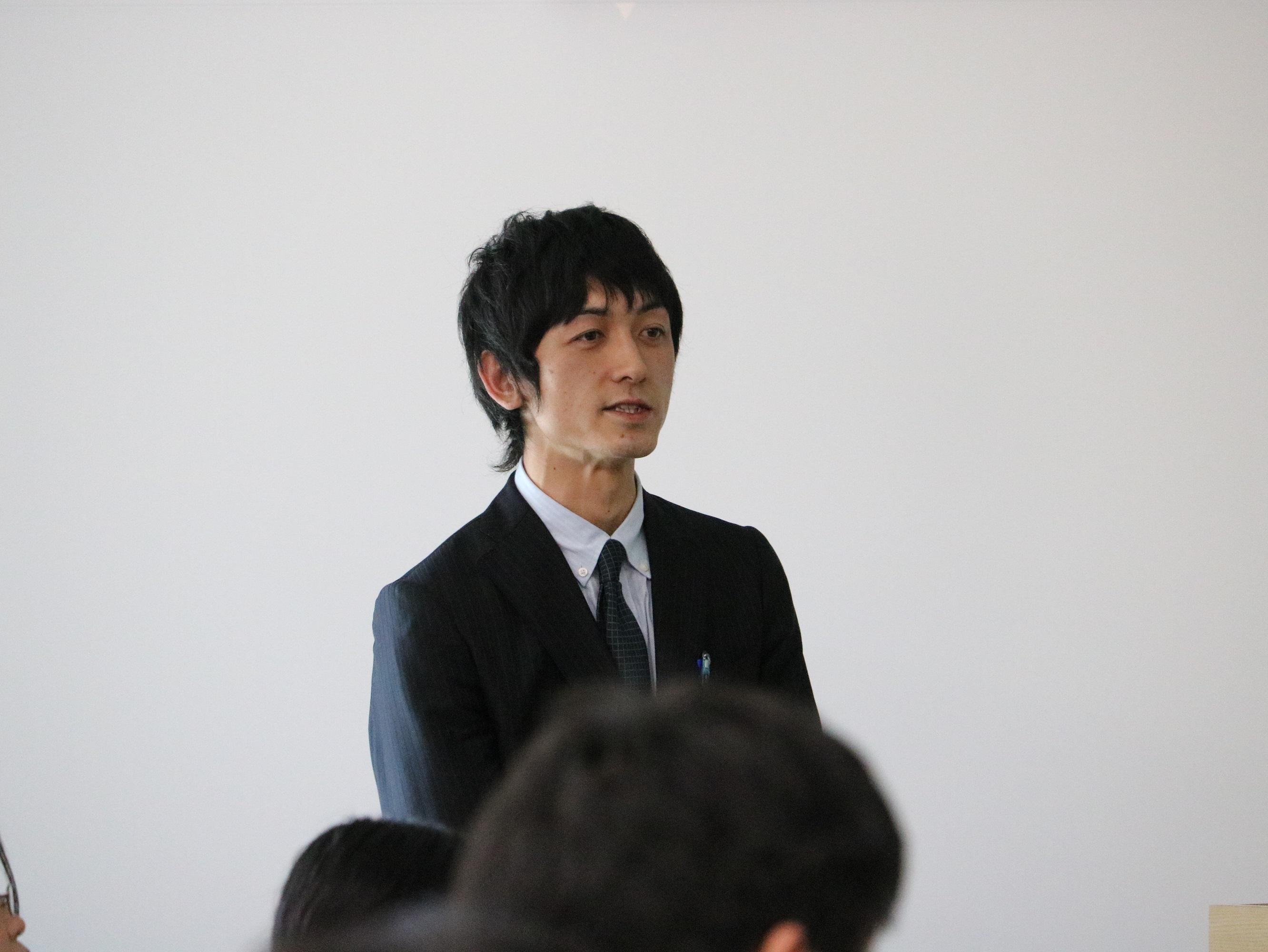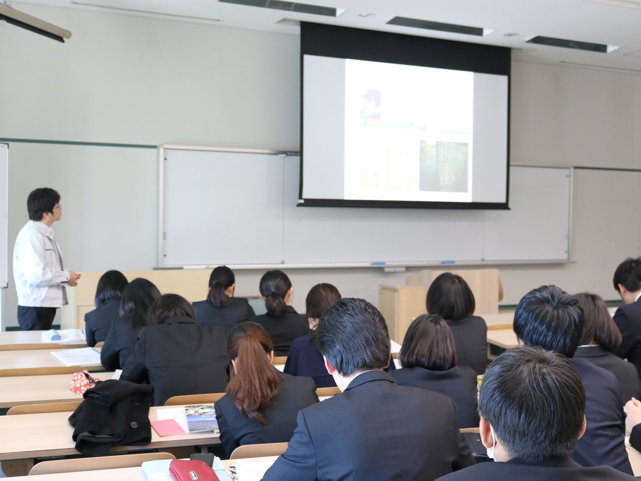 今回は高知工科大学において、システム工学群の建築・都市デザイン専攻3年生45名に、当社の齋藤と兵頭が若手の会を代表して右城高知県部会長と共に説明をしてきました。