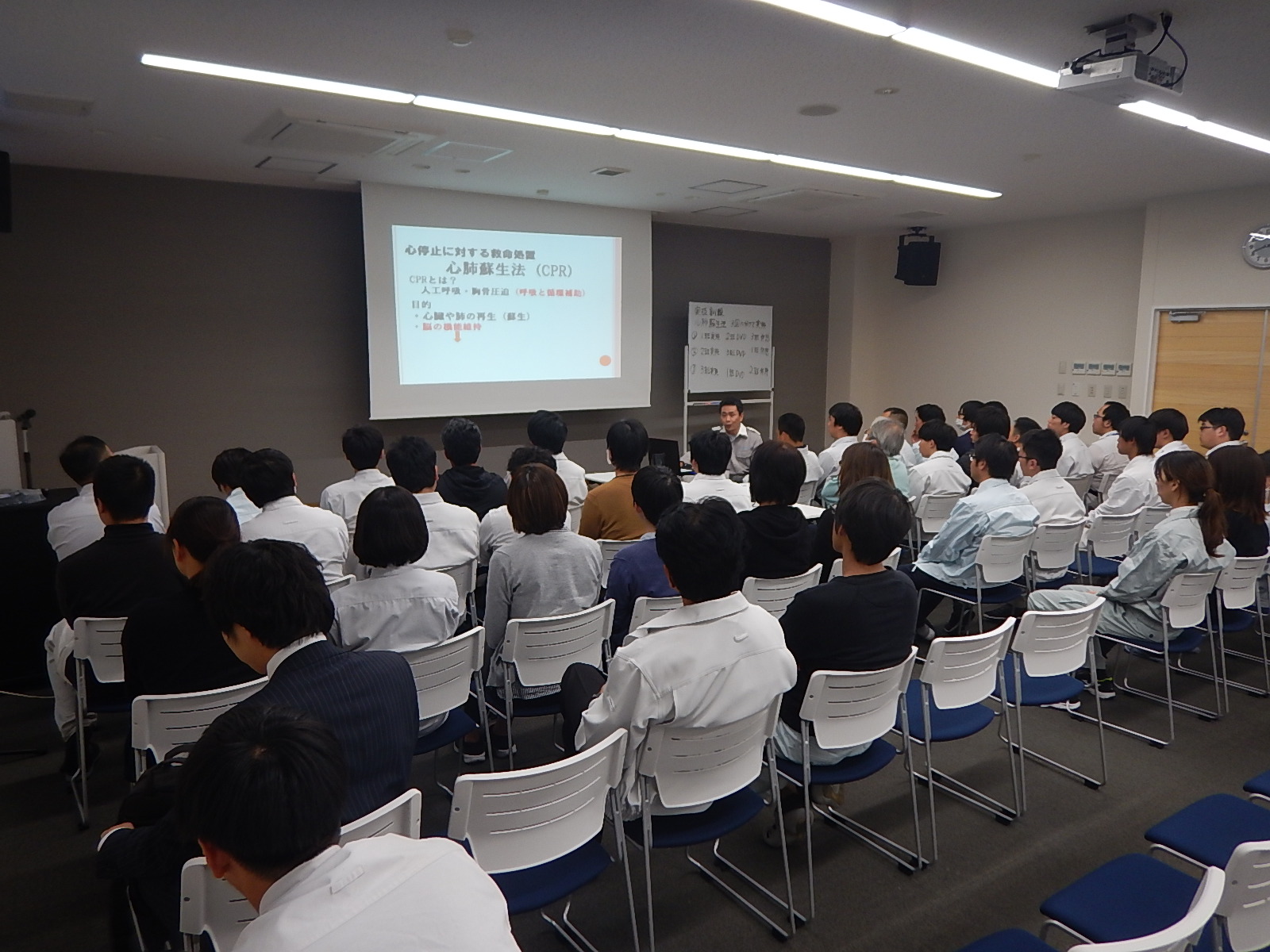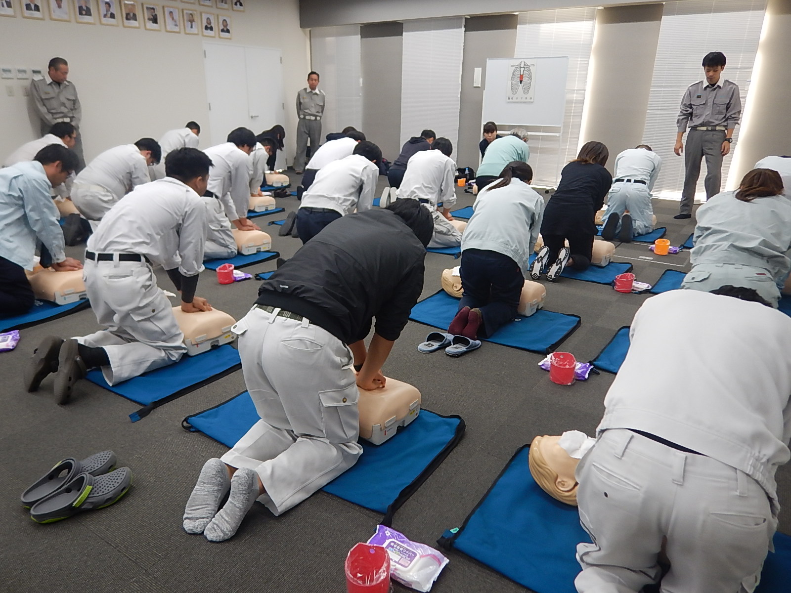 救急隊到着までの数分間による「心肺蘇生法」が行われるかどうかが救命率に大きく関わります。万が一の事態に備え、「正しい救命処置の手順」を学ぶことができました。