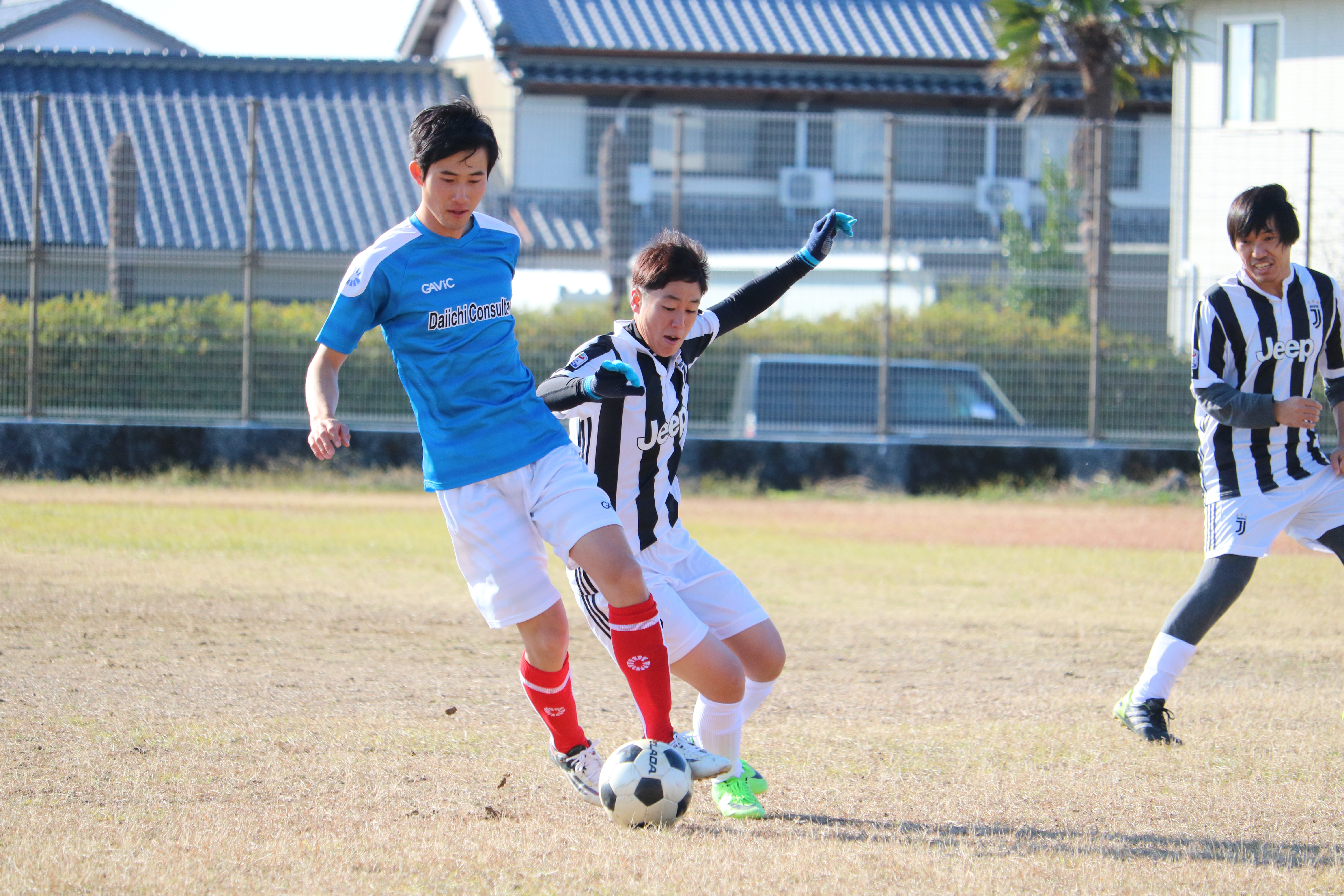 相手は、昨季の覇者である強豪チームでしたが、前半10分に吉田選手が先制点となるゴールを決めるなど善戦し,前半は,1-2で折り返します。