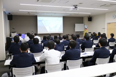 はじめに、高知高専の卒業生でもある取締役設計部長の濱田(24Z)より挨拶をした後、当社の概要説明動画や5年の歩みを視聴して頂きました。