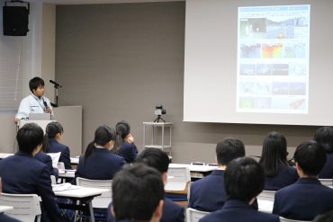 本日、高知県工業会主催の高知高専交流事業の一環として、高知工業高等専門学校ソーシャルデザイン工学科1年D組の学生40名、随行の先生2名が当社の見学に来られました。高知県内のものづくりや防災に関係する企業を実際に見ることで、将来の進路の参考にされるようです。