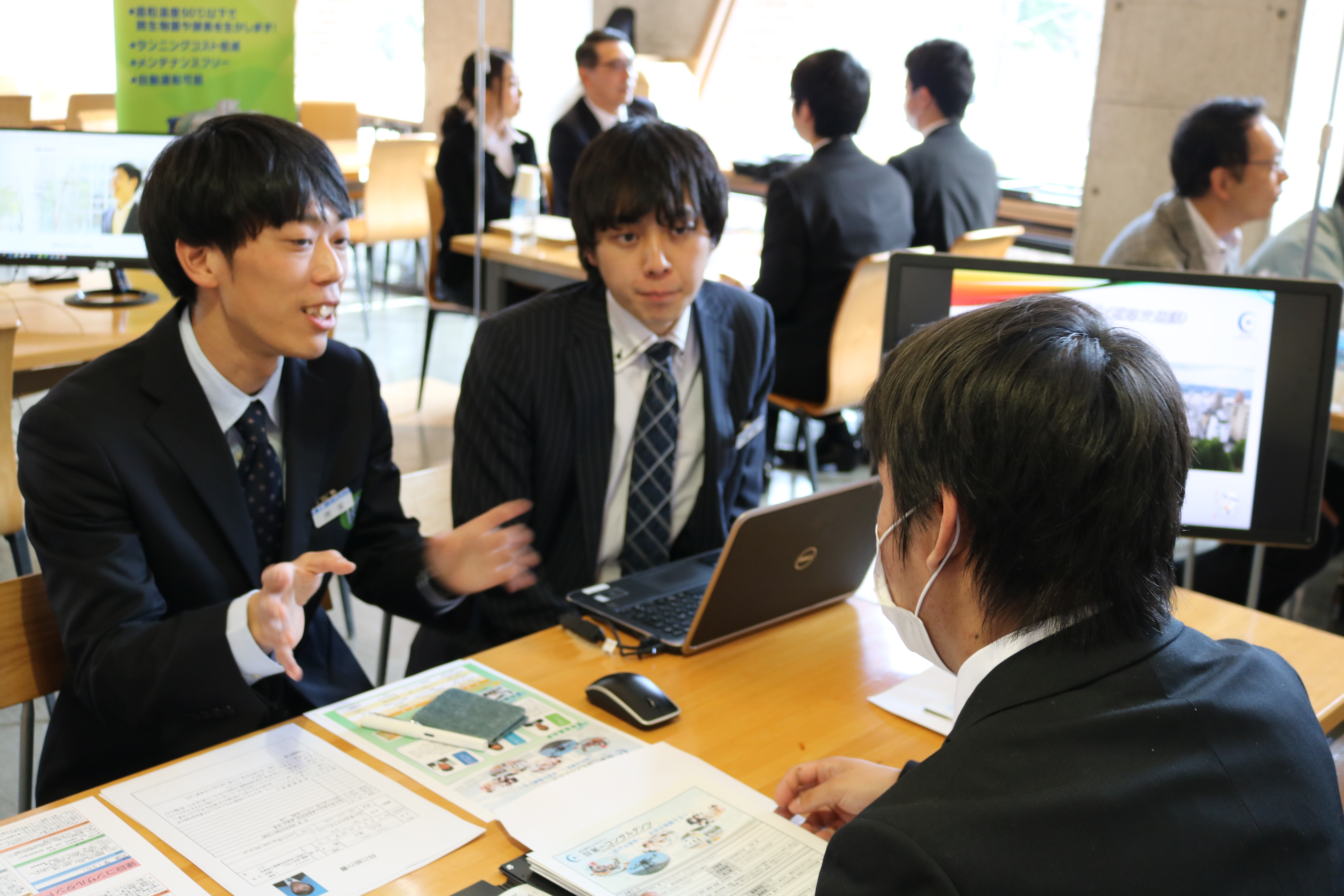 開会のご挨拶の後、参加学生が約2時間45分の限られた時間の中で各企業のブースを訪問していました。工科大生の積極的な姿勢や今の思いを感じることができ、とても有意義な時間でした。