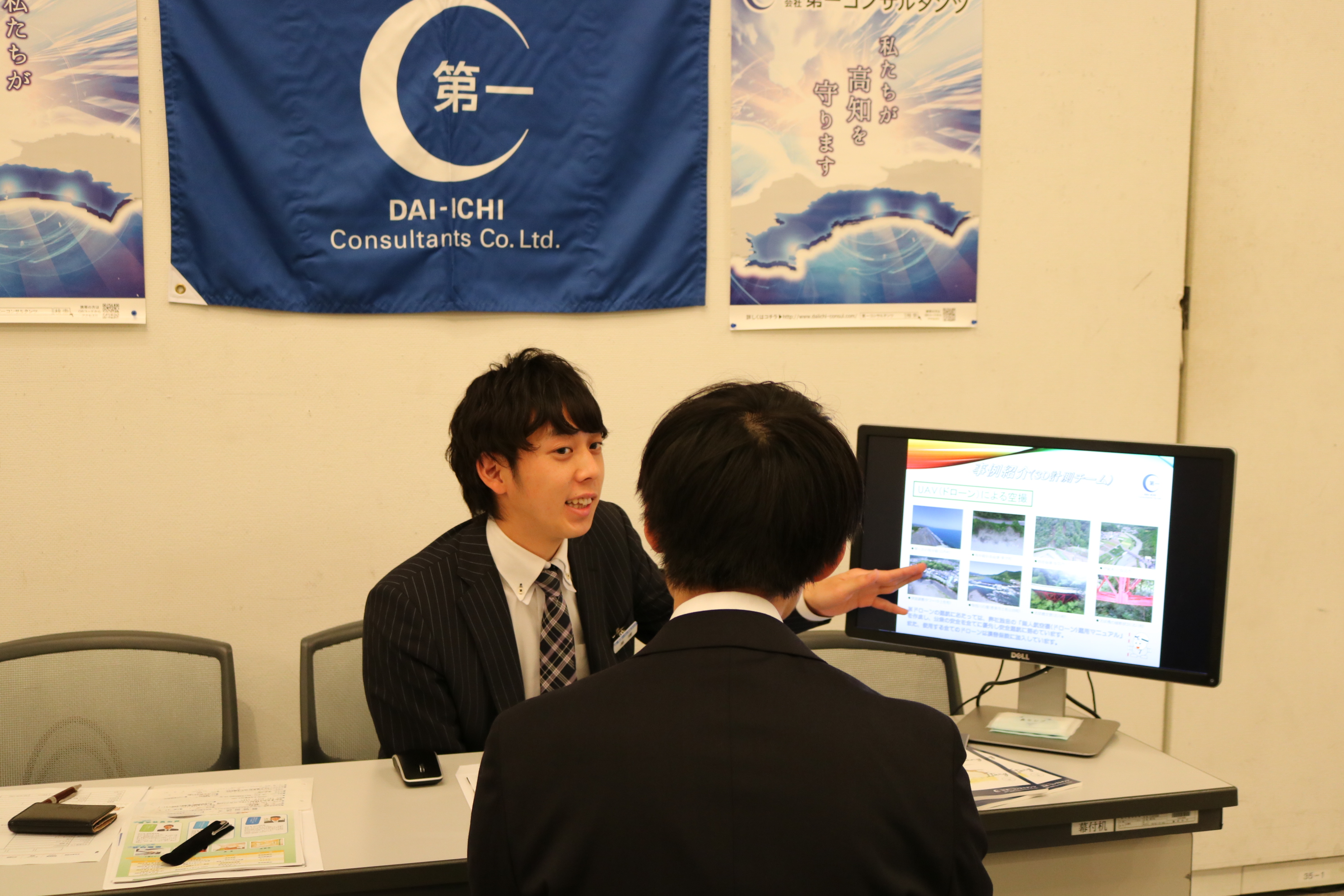 各社3分スピーチの後、ブースの訪問が始まりました。学生の方からは具体的な質問も多く、就職活動に対して積極的な姿勢が感じられました。面談に来て頂いた学生の方、ありがとうございました。