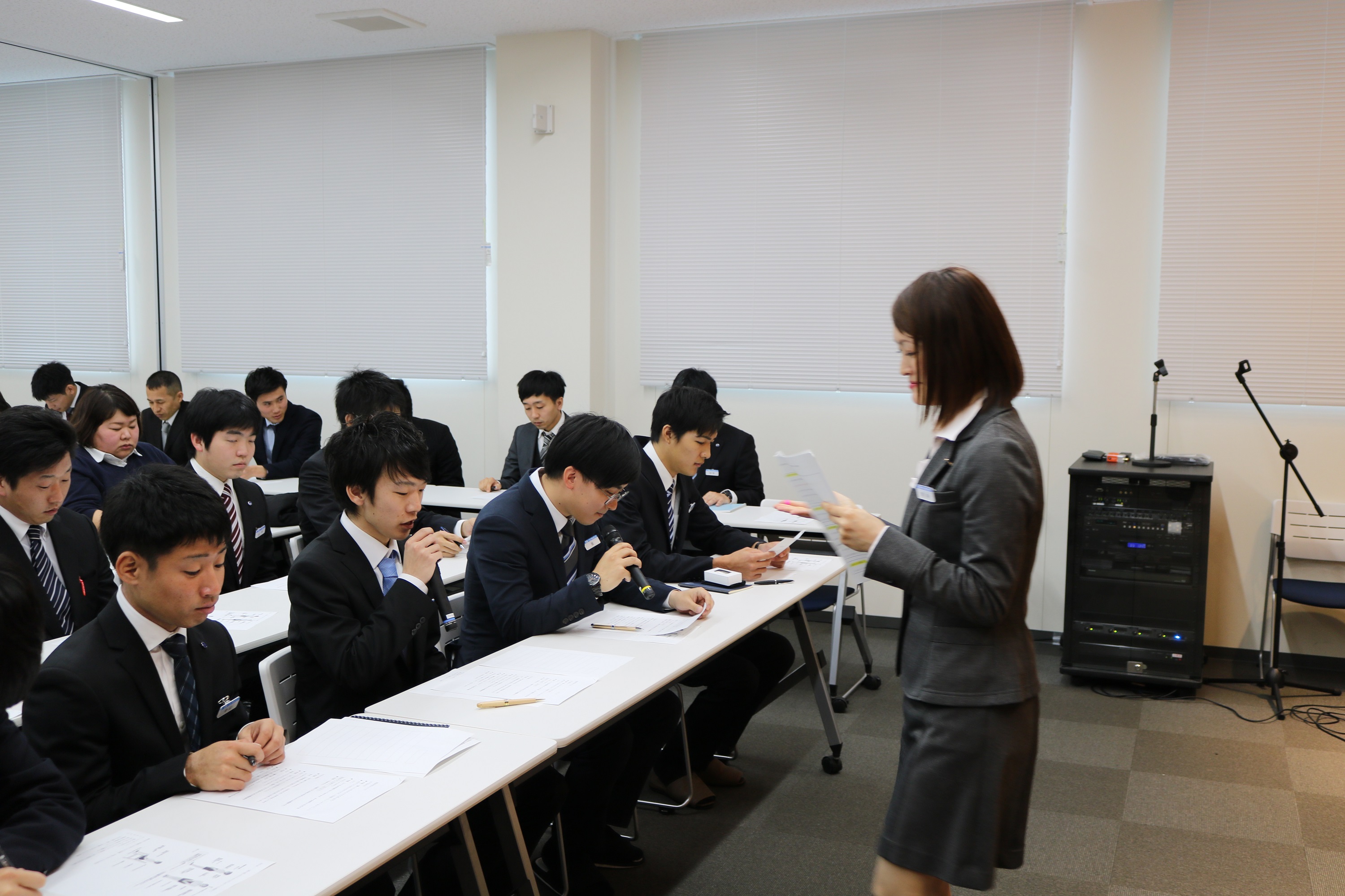 平成31年4月1日に、本社1階研修室にて、毎年恒例となったビジネスマナー講習を開催しました。今回の講師は昨年度に引き続き総務課 明神が担当いたしました。講習には、新入社員や見学学生を含む70名あまりが参加し、基本的な電話応対の仕方から応用まで事例を踏まえながら学びました。