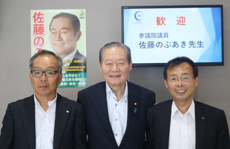 参議院議員の佐藤のぶあき先生が、タイトなスケジュールの間隙を縫って第一コンサルタンツにお立ち寄りいただきました。