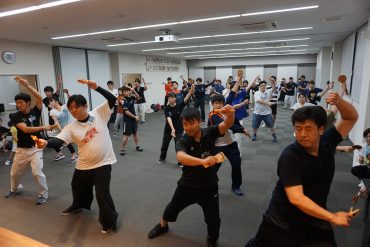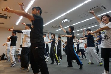 初日の練習には、参加申し込みをいただいた方に加えて、まずは練習見学だけでもという方も来られ、合わせて約80名が本社研修室に集結しました。