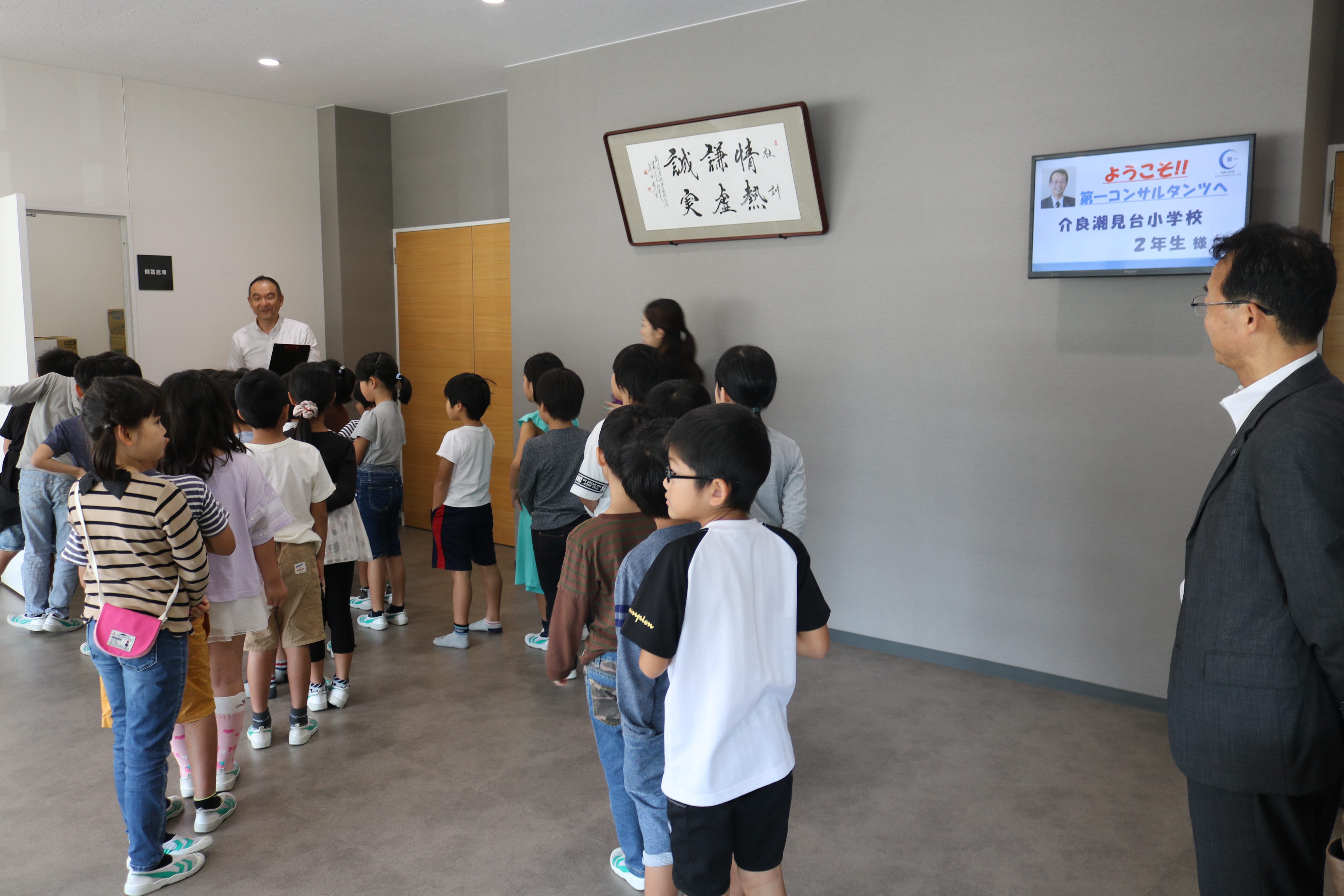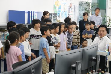 本日、介良潮見台小学校2年生(児童26名、先生2名)が社会見学の一環として弊社の社内見学に来られました。