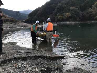 弊社ではマルチビーム測深機を導入し、永瀬ダムにて試験計測を行いました。