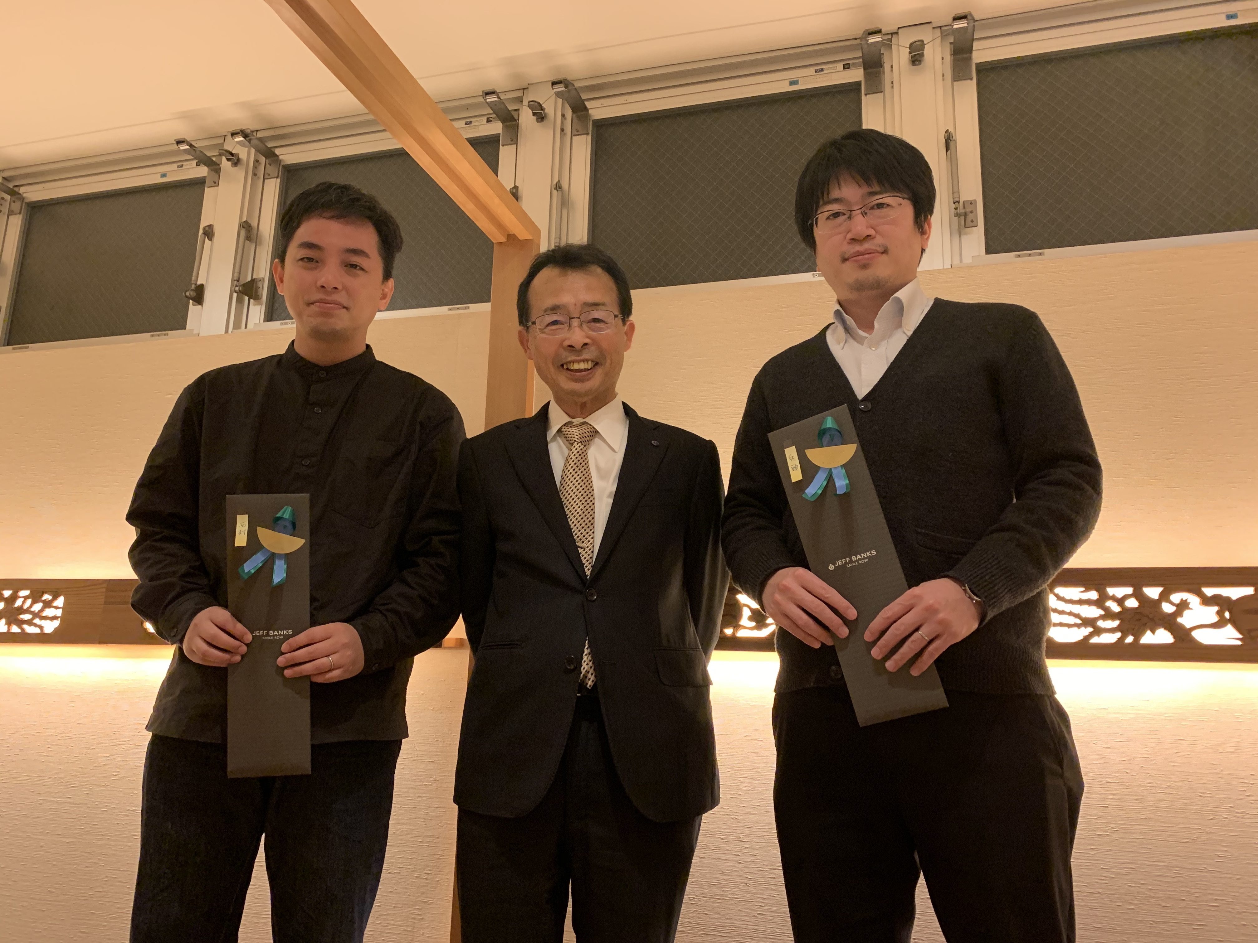 右城社長から二人には、「技術士に相応しい身だしなみをして下さい」と合格記念のネクタイがプレゼントされました。
