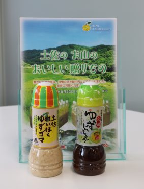 同製品は、 “JAファーマーズマート とさのさと” の他、主に東部の産直市等で販売されており、松繁氏によれば、『特に「ゆずゴマドレッシング」は、柚子の爽やかな風味とゴマの香ばしさが絶妙にマッチしているとして大好評。是非この機会にご家族でご試食いただき、ご家庭の定番商品に加えていただければ…』とのことでした。