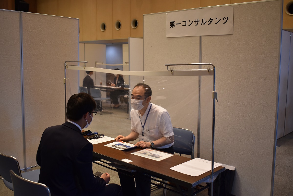 本日、高新文化ホール(高知市本町3-2-15 高知新聞放送会館7階)にて行われた「高知就職ガイダンス・追加開催」に参加しました。3部に分かれ、各部の参加企業数10~11社、一回の説明に学生数2名・対応時間20分という制限のついたブース訪問でした。コロナの影響禍、まだまだ就活できていない学生の方に短い時間でしたが精一杯ご説明しました。面談に来て頂いた学生の皆様、ありがとうございました。