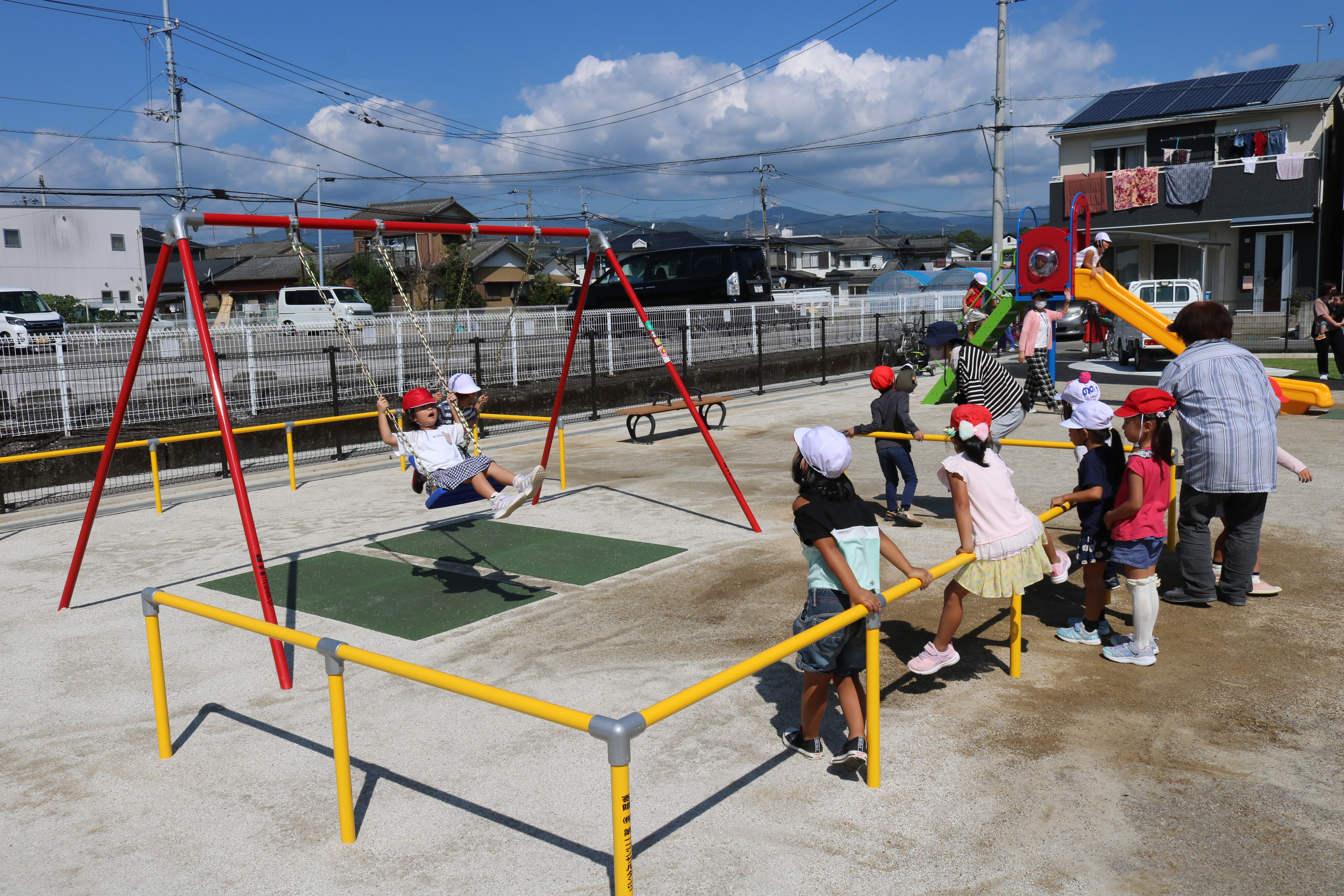 弊社は、地域貢献活動の一環としてブランコを寄贈させていただきました。