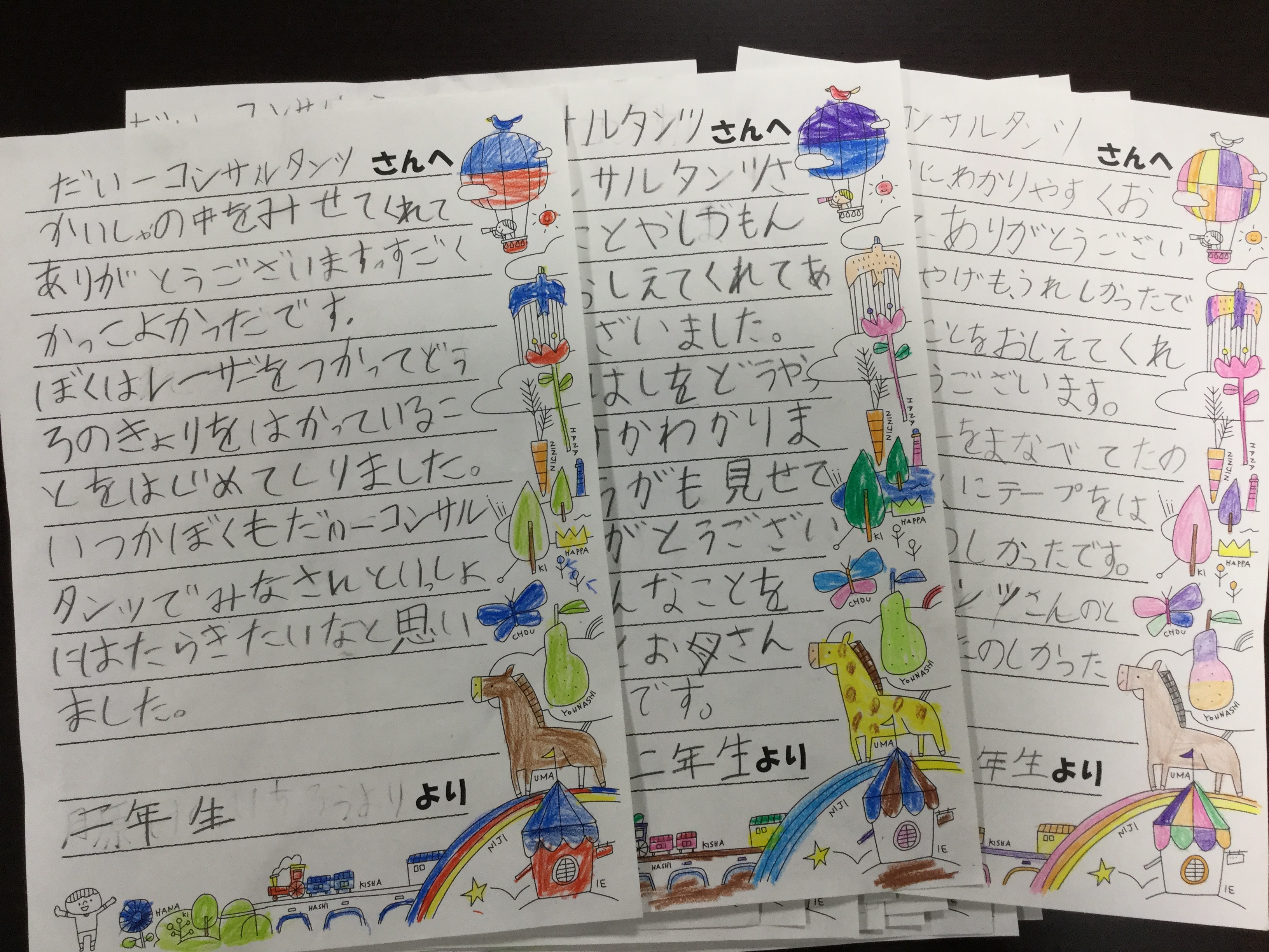 中には、「いつか第一コンサルタンツでみなさんと一緒に働きたい」といった内容のお手紙もあり、大変嬉しく思いました。皆さん、素敵なお手紙をありがとうございます。