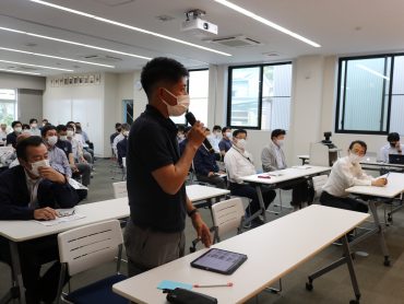6月7日(月)、高知大学教育研究部自然科学系理工学部門教授 原 忠先生をお招きし、第30回第一セミナーを開催しました。高知でも近日増えつつある新型コロナウイルス(COVID-19)感染症防止対策として、本社での講演は1階研修室の他に、ロビー、2階サテライト室に分けて聴講出来るようにし、外部の方にはWEB配信での参加をお願いしています。今回は幡多支店、松山事務所、ミャンマーにいる新入社員の他に、来年の内定者の方にもリモートで参加していただきました。
