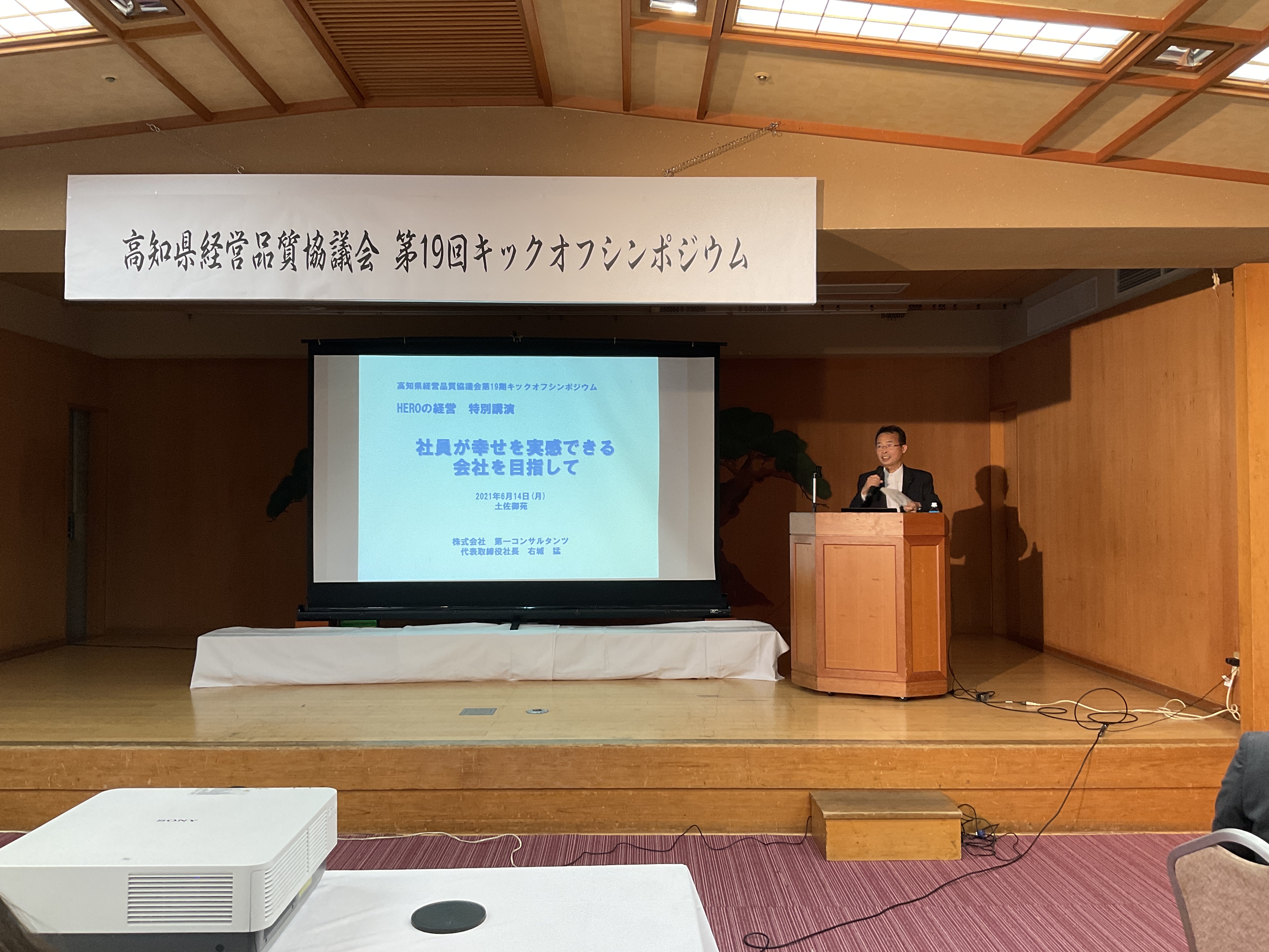 本日、土佐御苑で開催された高知県経営品質協議会(KQN)第19期キックオフシンポジウムにおいて、右城社長が「社員が幸せを実感できる会社を目指して」と題した講演をいたしました。