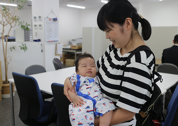妊娠初期が一番体調が優れない時期なので、すぐに上司に報告しました。周りの手助けがあり、仕事も体調も安定した日々を過ごすことができました。☆出産した時