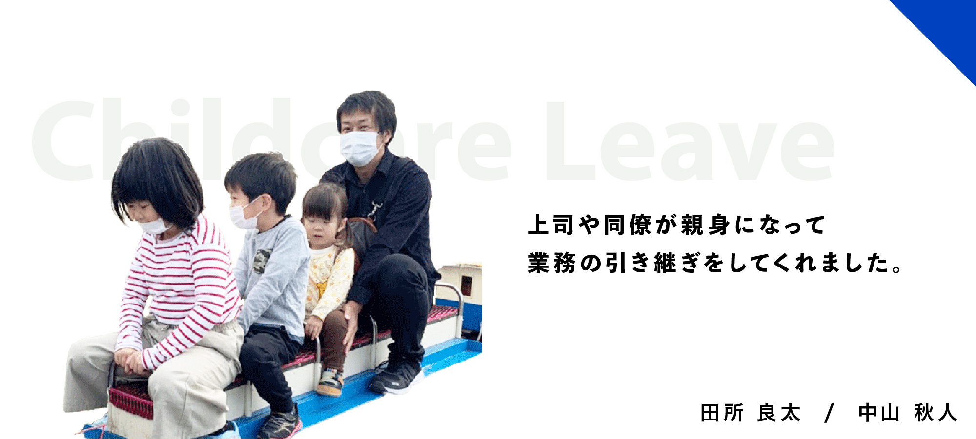 私は第1子の産後1ヵ月間の育児休暇を取得しました。当時は「育メン」という言葉が世間で話題になっていましたが、この業界だけでなく地方企業での男性社員の育児休暇取得をほとんど聞いたことがない状況です。 そんな中、私の休暇中の対応に向けて、上司・同僚が親身になって業務の引継ぎをしてくれました。 そのおかげで、私にとって非常に貴重な時間を過ごすことができました。同時に、仕事で悩んだときに気兼ねなく相談することができる方々と共に仕事をしていることを実感しました。