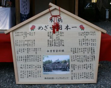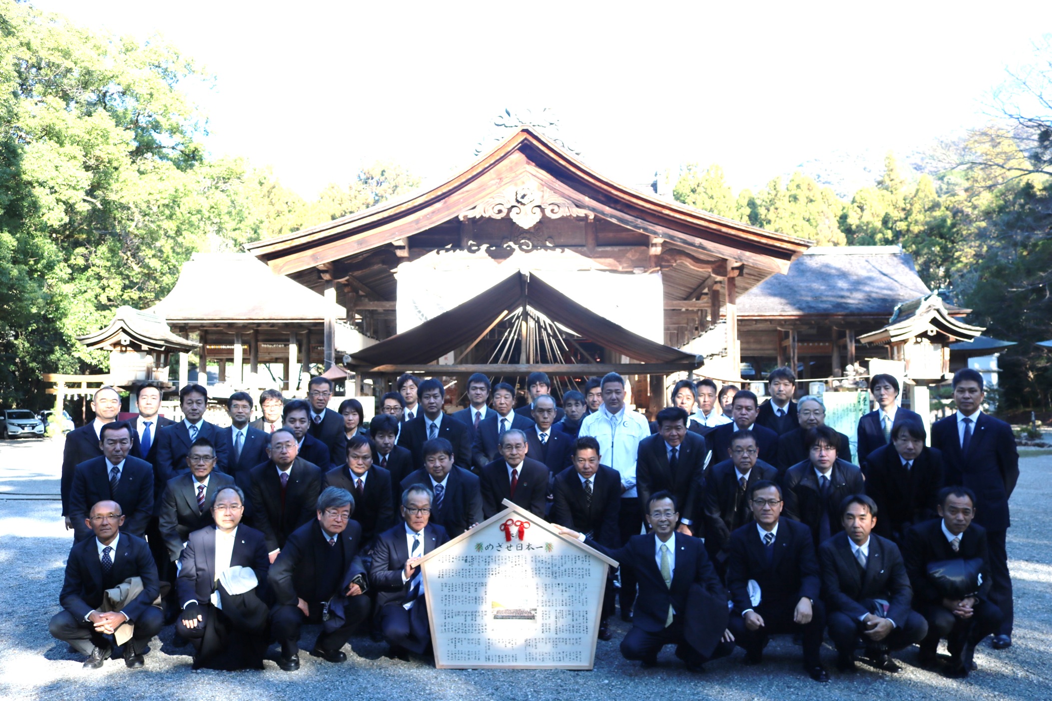 社長の右城による年頭の挨拶の後、毎年恒例となった巨大絵馬に社員の抱負を込めて幹部社員で土佐神社に参拝し、社内安全・社業繁栄の祈願と絵馬を奉納致しました。