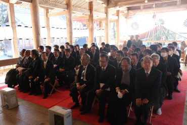 社長の右城による年頭の挨拶の後、本社の社員全員が今年の抱負を巨大絵馬に書き、それを土佐神社に奉納するとともに、幹部社員で社内安全と社業繁栄を祈願致しました。