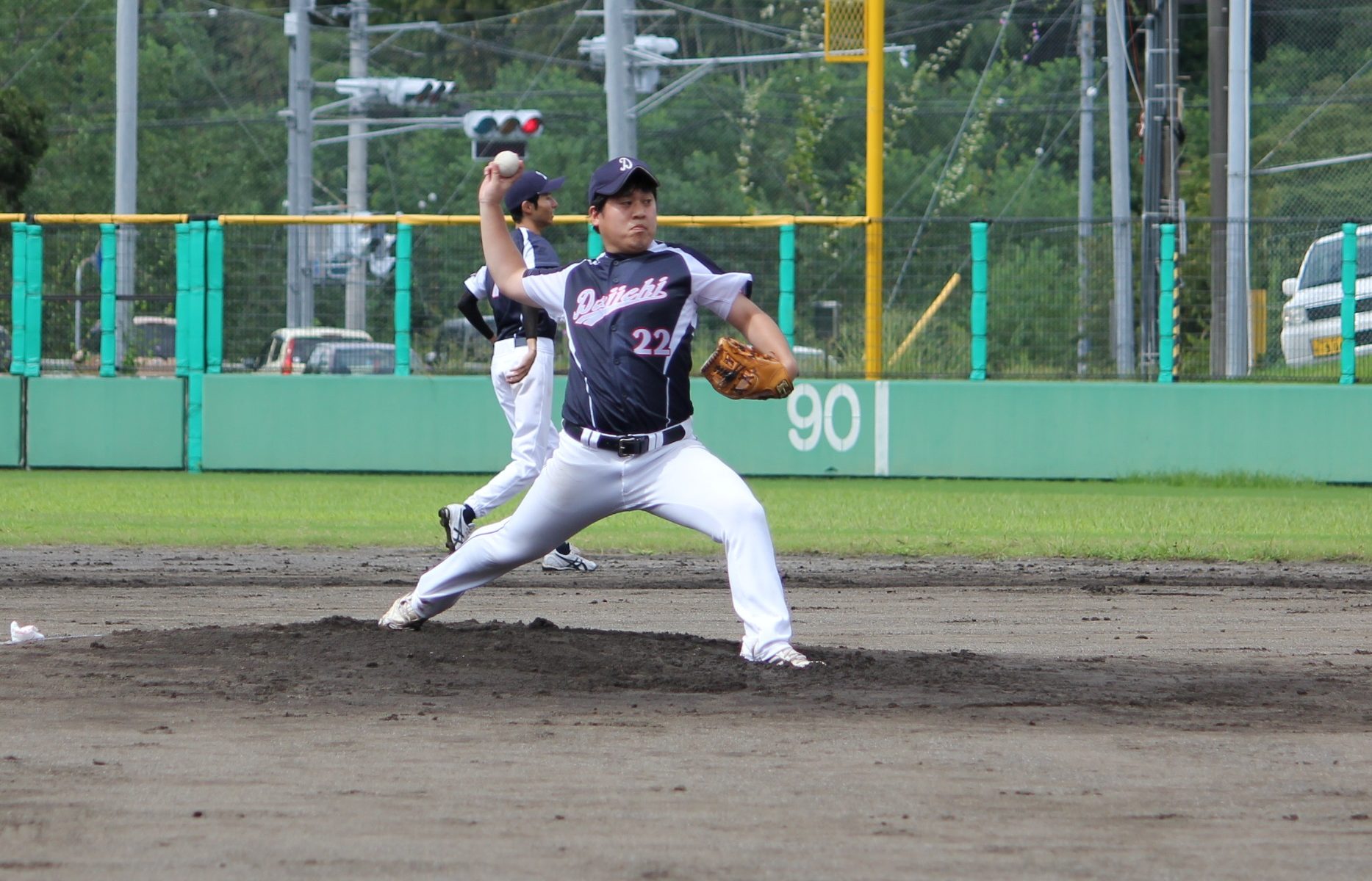 試合は1点を追う5回裏の2アウト1、2塁から西森君のセンター前ヒットでまず同点。相手守備の乱れもあり勝ち越しに成功。この回、一挙3得点を挙げました。エース片山君が6回2失点の好投&3安打猛打賞の活躍で勝利の立役者となりました。