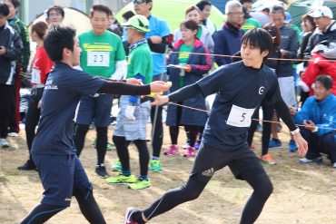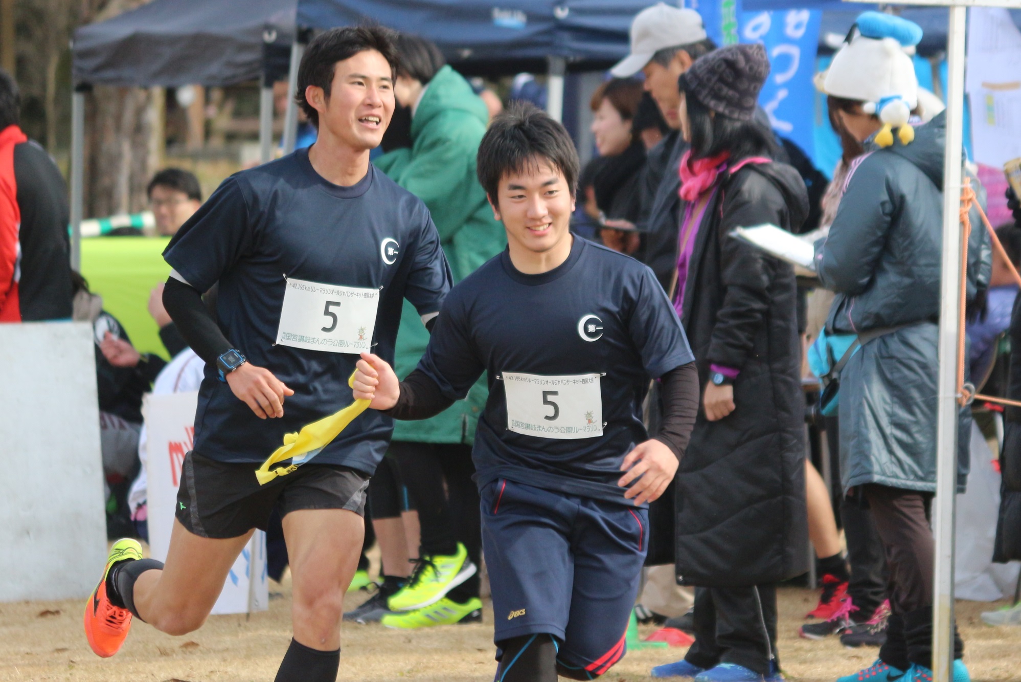 工業高校の先輩後輩で襷リレー(左:小松選手、右:泉選手) |