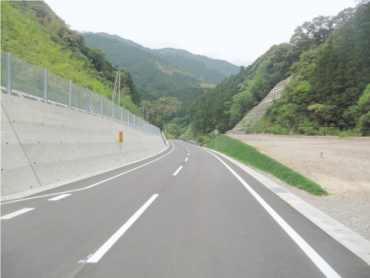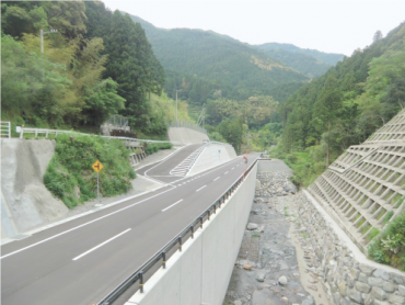 弊社では、いの町工区のうち小川工区~大峠工区の道路、構造物及び橋梁設計等を行い、平成25年2月に大峠工区が供用されました。これに伴い国道439号いの町区間(L=27km)が全線開通となりました。